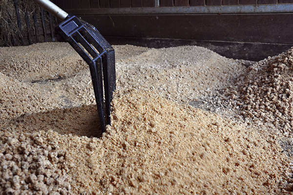 Zur Pflege des Boxenbettes brauchen Sie in den Folgewochen nur die Pferdeäpfel abforken und nasse Stellen zu entnehmen. Je nach Bedarf streuen Sie nach. Pro Woche reichen etwa 1-2 Säcke zum Nachstreuen aus.